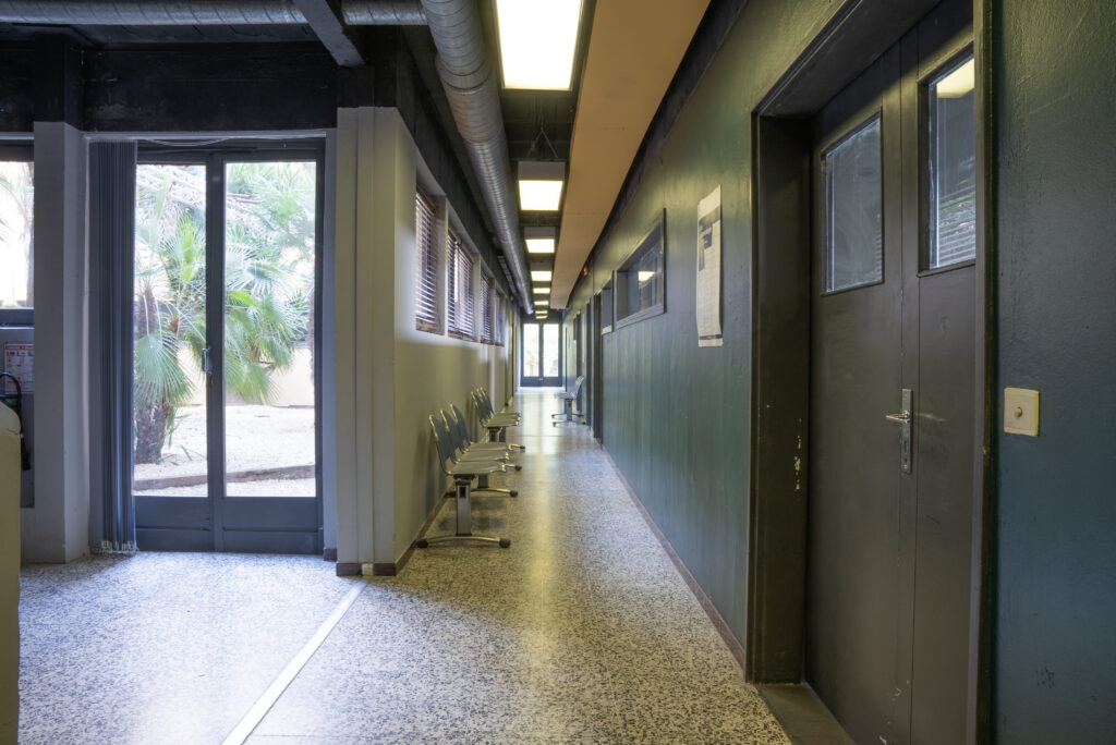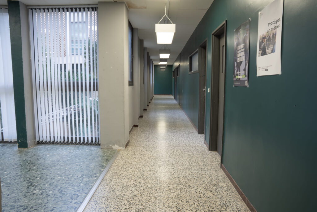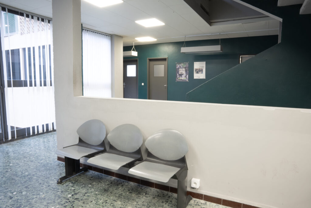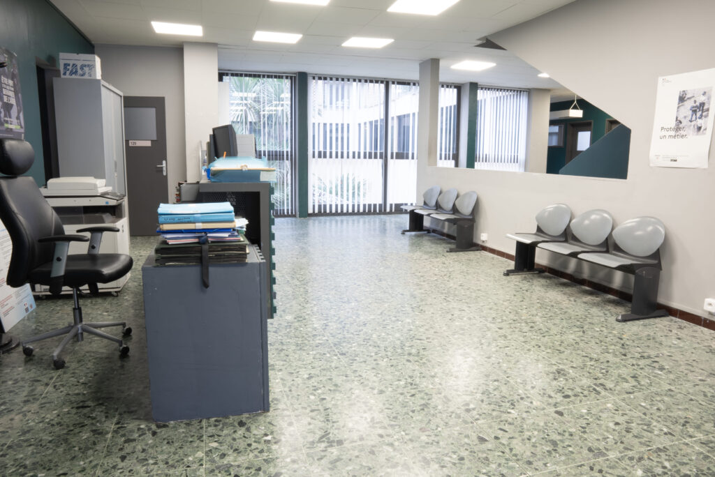 Ce décor constitue un espace d’accueil accessible depuis un parking, par une double porte vitrée coulissante automatique. Mais également des couloirs et des escaliers de circulation qui relient les décors les uns aux autres, à l’exception du décor « chambre d’hôpital ».